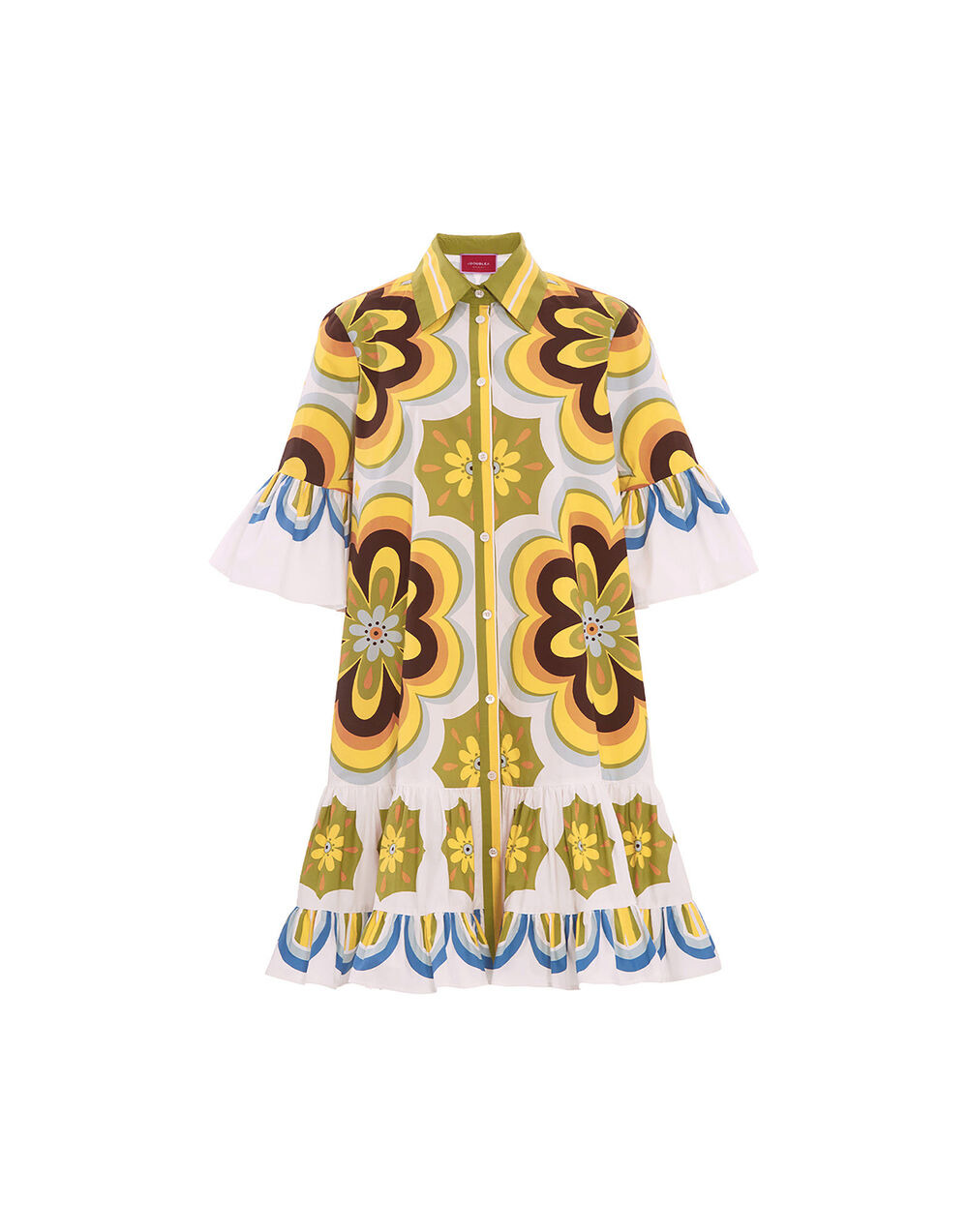 Looking for something smart but sweet, short and neat? Look no further than our Choux Dress. This is a great number for our shorter Great Gorgeous Girls, but is equally as sassy worn as a thigh-skimming style. Crafted in bouncy cotton poplin in our bold Ciccio print placed by the finest artisan hands, it is lightweight, breathable and a great in-between season go-to. Details & Fit - Cotton poplin - Collar - Fluted short sleeves - Dropped waist - Tiered skirt - Hand placed print - Buttons through front - 100% Made in Italy - Composition: 100% Cotton - The model is 178 cm tall and wears a size S - Garment length: 90cm