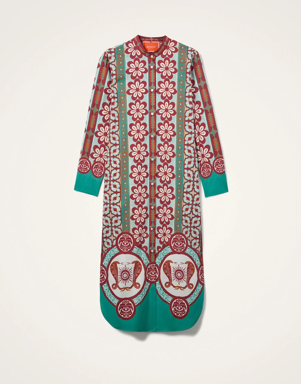 We love a double-duty dress here at La DoubleJ and this one is no exception. With deep slits up the sides and a classic collarless tunic shape, we love to wear this alone over a swimsuit as a dress or layered over a Let Loose Pant or Big Skirt as a molto modern top. Details & Fit - Cotton poplin - Buttons all down the front - Placed print - Slits up the side - Long sleeves - Made in Italy - Composition: 100% cotton - The model is 178 cm / 5′ 10″ tall and wears a size S