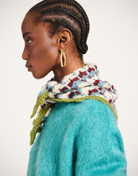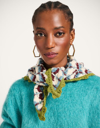 We love highlighting the exeptional craftsmanship of our Italian artisans, so this gorgeous, multicolored, crochet triangle scarf ticks all our boxes. We love it worn as a headscarf or tied around the nape of the neck as a cute kerchief, perfect for keeping chic in those in-between seasons. Details & Fit - Wool Blend - Crochet scarf - Triangle shape - Composition: 57% Wool 15% Polyamide 15% Mohair Wool 8% Alpaca Wool 5% Silk - Made in Italy