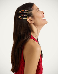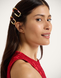 We're getting nostalgic for the Nineties around here, and so have crafted some high-vibration vintage-inspired hair clips to add a youthful pop of color to our everyday wardrobe. But don't mistake these for your basic teenage accessories, amore. These come embellished with multicolored crystals for a little more Italian opulence. Details & Fit - Colored hair clip - Multicolored gems - Made in Italy - Composition: 65% Brass 35% Crystal