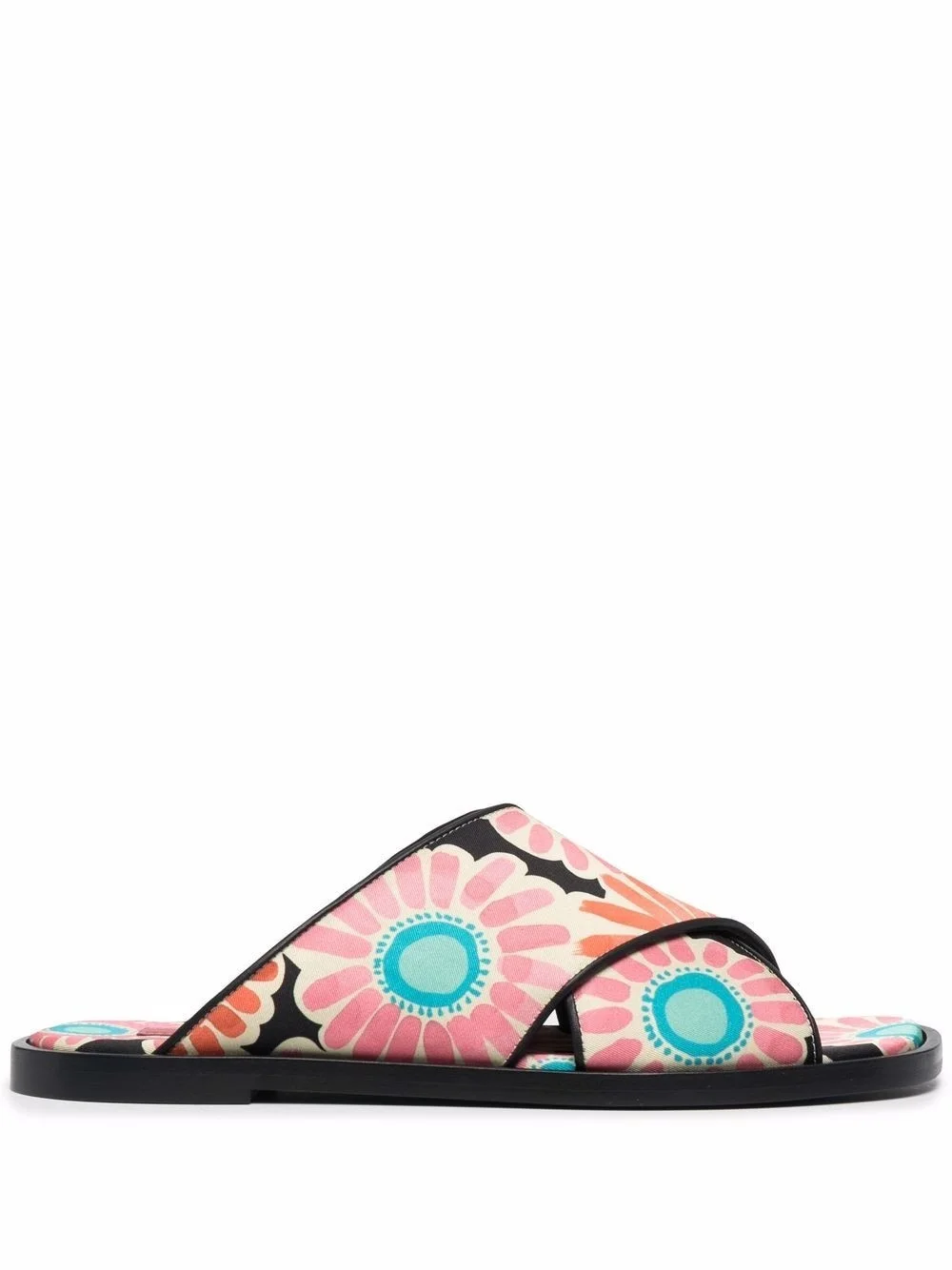 daisy-print criss-cross sandals multicolour daisy print crossover strap at the toe slip-on style open toe flat rubber sole Made in Italy Composition Leather 100%