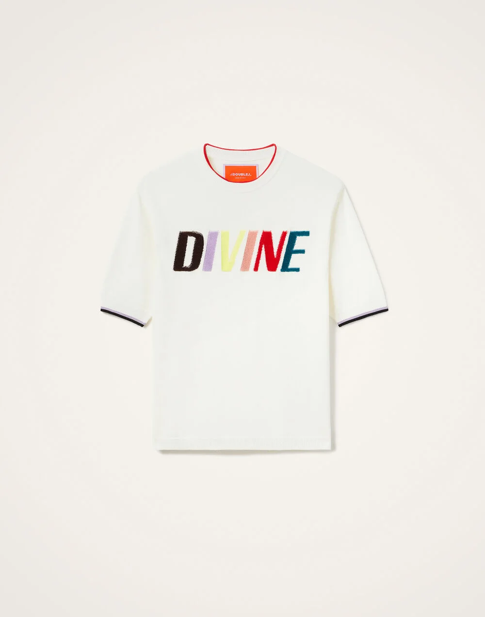 One of our core commitments here at La DoubleJ is to connect you to the Divine, darling and while all of our printed and colorful product (and even our solid styles) deliver on this promise, we decided to get a little literal with this one. Crafted from the finest Italian jersey blend with a little stress, this Tee not only upgrades your aesthetic and your energy but also the energy of all those who see you in it. Details & Fit - Jersey tee - 100% Made in Italy - Composition: 88% Viscose 8% Cotton 4% Polyester - The model is 178 cm / 5′ 10″ tall and wears a size S