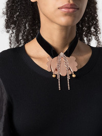 draped floral necklace gold brass-blend gold-tone hardware draped design statement pendant Made in Italy SIZE & FIT Model measurements Height 5 ft 10 in(1.78 m) Bust/Chest 33.07 in(84 cm) Hips 36.61 in(93 cm) Waist 24.8 in(63 cm)