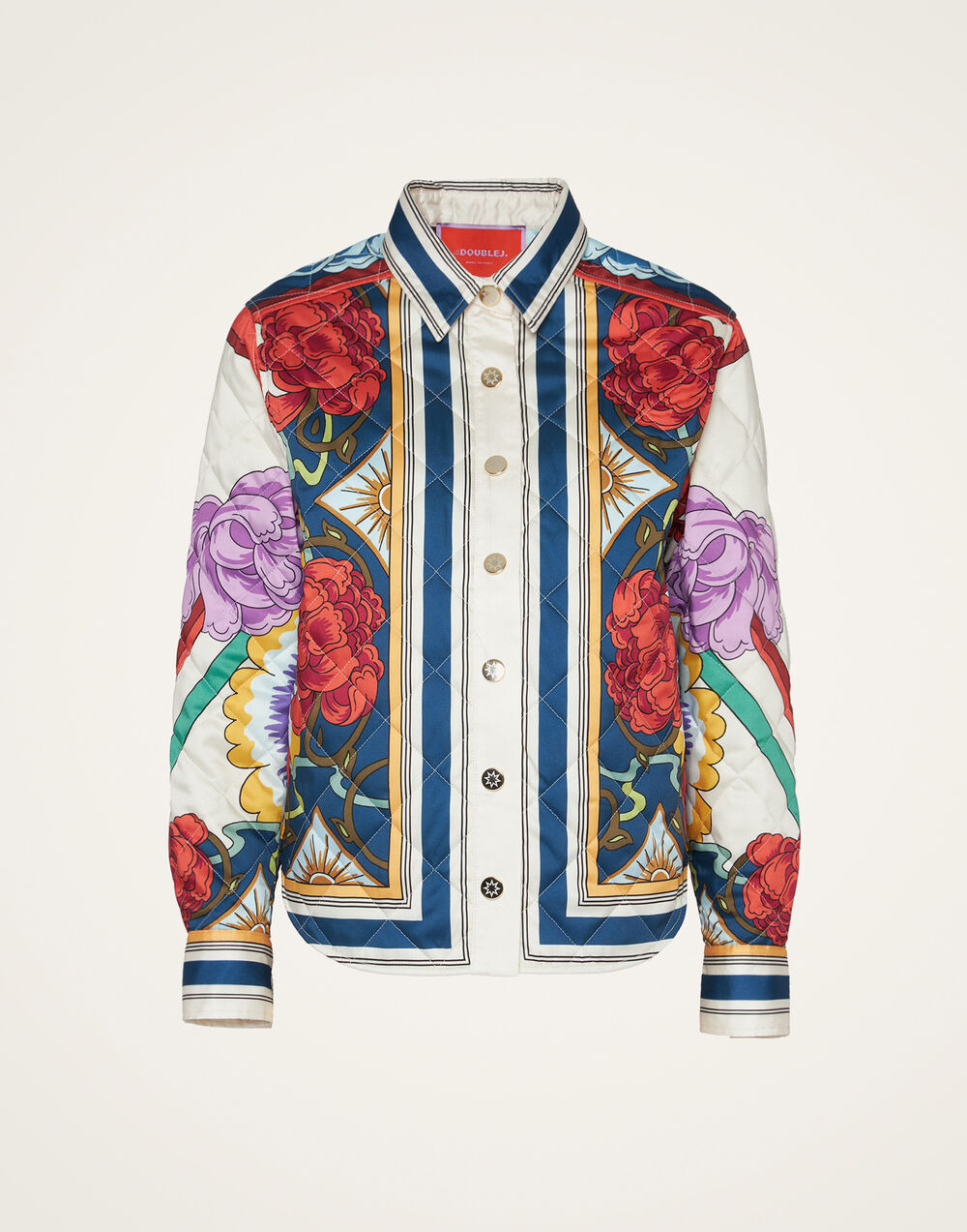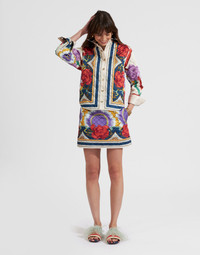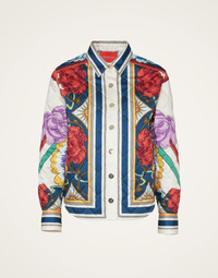 High on impact and low on effort, Edie is the answer to cold shoulders this summer. Riffing off a cropped denim jacket design, she’s made in our light and glossy twill (it feels great on skin) in this stunning motif inspired by Milan’s lavish Liberty era designed in-house to promise where’s-that-from style. You’ll find button snaps down the front and a contrast print inside. It’ll go high or low with everything from slip dresses to high waisted shorts, but we like it best styled with the matching Edie Skirt. Details & Fit - Twill - Hand-placed print - Cropped silhouette - Cuffs - Button snaps down the front - Contrast print inside - Side pockets - 100% Made in Italy - Composition: 100% Polyester - The model is 178 cm tall and wears a size S - Garment length: 50cm