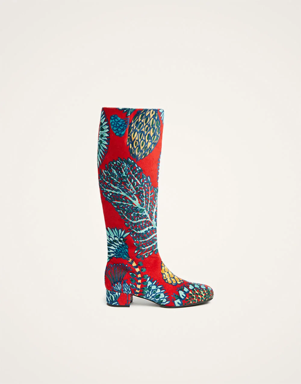 Inspired by the iconic and effortlessly cool Edie Sedgwick, these boots are our favorite blend of classic and contemporary. We took a vintage sixties boot shape and modernized it, cropping it just below the knee and covering it entirely in printed jacquard or sumptuous Italian velvet. Let just a sliver of these saucy shoots peek out from under your Give It To Me Straight Jeans, or celebrate these boots in all their gorgeous glory by pairing them with one of our Midi or Mini Magnifico Dresses. Want to go full retro? These obviously look divine with the quilted Edie Jacket and Edie Skirt. Details & Fit - Low heel - Hits just below knee - Printed velvet - Zipper along inside leg - Made in Italy - Composition: 100% Cotton velvet