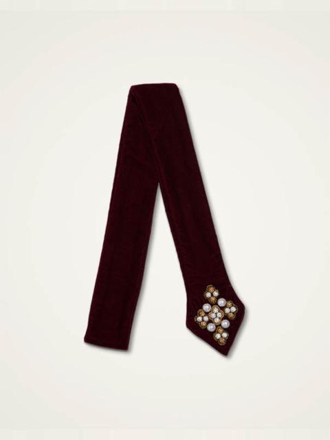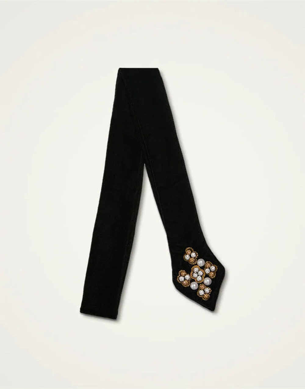 Mamma mia, do we love a little multi-purpose moment. Inspired by the romance of Renaissance accessories, this printed velvet stole can be worn as a foulard around the neck, or an elegant headband, elevating any everyday look to next-level luxury. Details & Fit - 2-way stole - Velvet - Embroidered Pearl Details - Composition: 100% cotton velvet - Made in India