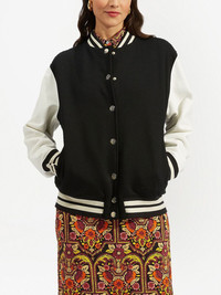 embroidered bomber jacket black/off-white cotton embroidered motif stripe trim baseball collar front press-stud fastening long sleeves two front welt pockets Made in Italy Composition Cotton 100% Washing instructions Read Manufacturer Guidelines