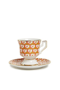 DETAILS AND INSIGHT La Doublej espresso cup set of 4 in cubi mix. Made in collaboration with Italian porcelain greats, Ancap, this set of four espresso cups and saucers is made from the highest quality Italian porcelain with a hand-painted gold trim. Bring these along as your next hostess present and you'll be first on the guest list for years to come. Italian-made porcelain. Hand painted 18K gold trim. Set of 4 espresso cups with matching saucers. Cups measure 6.3cm x 7cm. Saucers measure 11cm x 11cm. Dishwasher safer on gentle wash. 100% made in Italy Style DIS0042-CER001-CUB0008_HW7