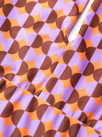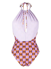 Esther neck tie swimsuit The Esther swimsuit arrives in La DoubleJ's striking 'Mezzaluna Orange' print, a bold design that is completed with a tie fastening to the rear. Highlights - Purple/orange - Front slit - Abstract pattern print - Neck tie - Open back - Be mindful to try on swimwear over your own garments. Made in Italy Composition Polyamide 80%, Elastane 20% Washing instructions Machine Wash