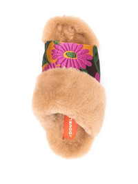 faux-fur floral strap slides multicolour faux-fur detailing single floral print toe strap open toe branded insole slip-on style Made in Italy Composition Silk 100%