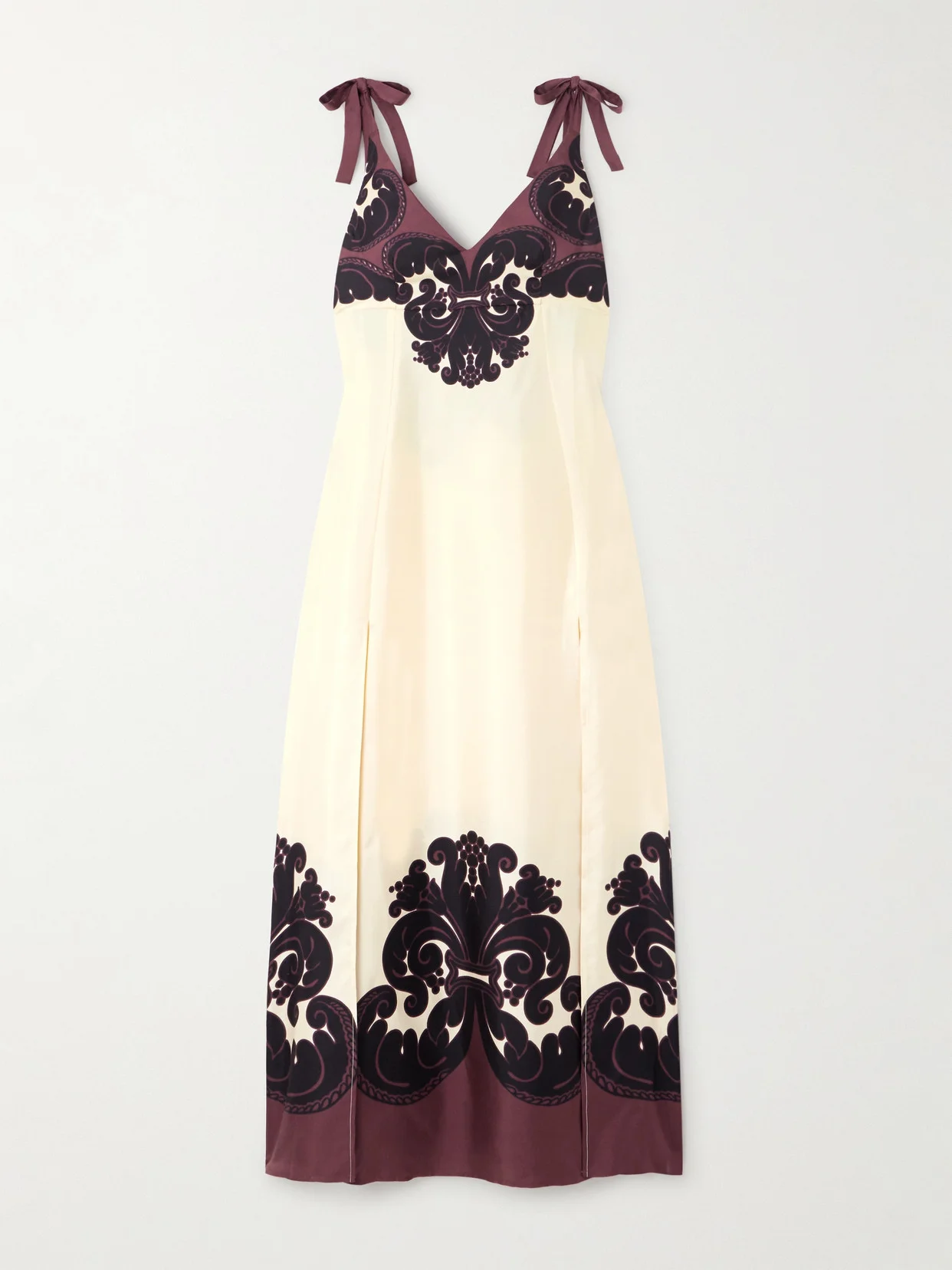 La DoubleJ is gifted when it comes to patterning, which is illustrated so beautifully by this 'Favorita' dress. Printed with baroque swirls, it's cut from fluid silk-twill and has a classic V-neck strung by bow-adorned straps. Wear yours with ballet flats in the daytime or heeled pumps for evening events.