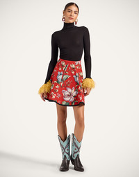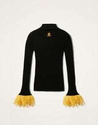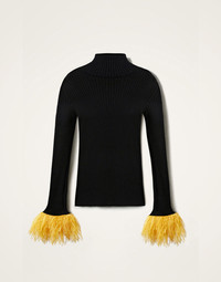 In true Italian style, we like to add a little extra joy jolt to all the clothes we create - here, we’ve taken a classic solid turtleneck shape and woven it in a sumptuous silk-cashmere blend, before trimming each cuff with a plume of feathers. Slim through the chest and shoulders and wide along the base to create an hourglass shape, this is a super flattering wardrobe staple, fabulous alone but extra elegant under a 24/7 Jacket with just the feathers peeking through. Consider it a happy high-kick to the heart. Details & Fit - Silk-cashmere blend - High neck - Slim through shoulders - Wide at hem - Feathers around entire cuff - Ribbed body - 100% Made in Italy - Composition: 70%Cashmere 30%Silk - The model is 181 cm tall and wears a size S - Garment length: 60cm