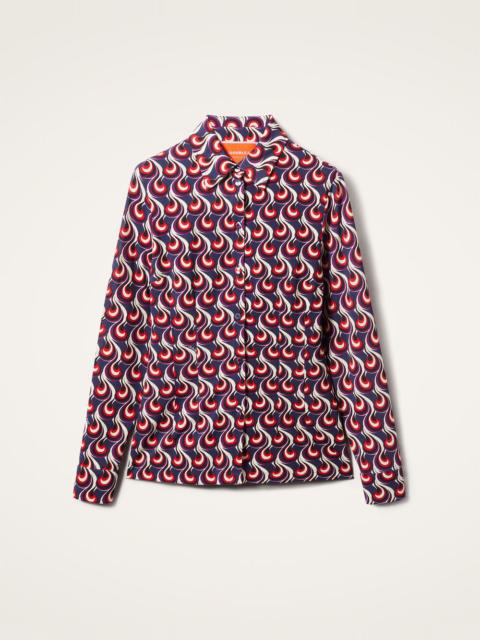 Sophisticated and sensual, the Fitted shirt is a prime example of exquisite Italian tailoring. Crafted from our flowy jersey with just the right amount of stretch, it hugs you in all the right places and gives you room where you need it. We love it left loose over a pleated knee length skirt or with jeans and one of our 24/7 Jackets. Details & Fit - Flowy jersey - Tailored slim fit - Button cuffs - All-over print - 100% Made in Italy - Composition: 92% Viscose 8% Elastane - The model is 180 cm / 5′ 11″ tall and wears a size S