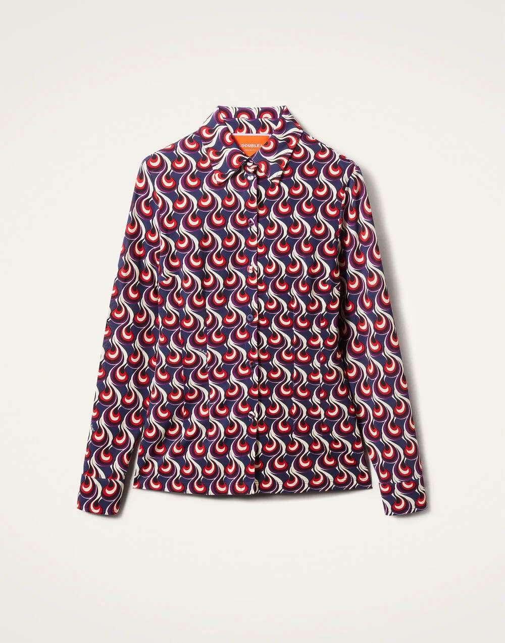 Sophisticated and sensual, the Fitted shirt is a prime example of exquisite Italian tailoring. Crafted from our flowy jersey with just the right amount of stretch, it hugs you in all the right places and gives you room where you need it. We love it left loose over a pleated knee length skirt or with jeans and one of our 24/7 Jackets. Details & Fit - Flowy Jersey - Tailored slim fit - All-over print - 100% Made in Italy - Composition: 92% Viscose 8% Elastane - The model is 180 cm / 5′ 11″ tall and wears a size S
