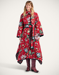 P.S.A. to your existing outerwear collection - they’ve got a new queen coat. Crafted from glorious Italian jacquard in La DoubleJ’s show-stopping prints, this silhouette is pure main character drama with a waisted fit, split hem and an oversized, foldable funnel-neck collar. This piece is deliciously decadent and super special - we love to contrast its high-fashion flair with a simple jean, or go full flamboyant with a printed, floor-sweeping dress underneath. Details & Fit - Jacquard coat - Hits mid calf - Oversized funnel neck collar - Asymmetrical closure in front - Pockets - Removable belt. - 100% Made in Italy - Composition: 33% Polyester 25% Cotton 22% Acrylic 9% Wool 6% Polyamide 5% Other Fibers - The model is 180 cm / 5′ 11″ tall and wears a size S