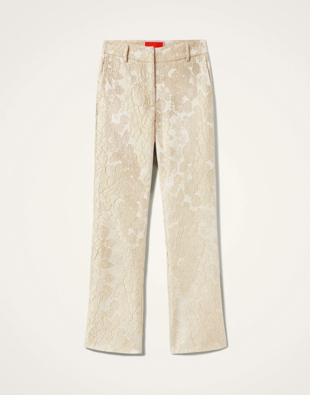 These pants were made for wow-ing. Cut in our stunning Italian jacquard with a cigarette shape, the 24/7 falls between our Hendrix Pant and Saturday Night Pant styles, and is infinitely flattering on all body shapes. They are designed to pair with the matching 24/7 Jacket but play just as perfectly as a pop of maximalism to a more pared down outfit. Details & Fit - Jacquard - Cigarette cut - Slightly flared hem - Jacquard bella - 4 pockets - Ankle crop - Fly button and zip - Equipped with belt loops - 100% Made in Italy - Composition: 97% polyester 3% polyamide - The model is 178 cm / 5′ 10″ tall and wears a size S