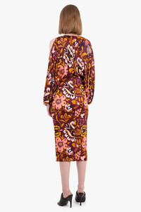 The La Double J Selva Aphrodite Dress in Maroon is crafted from a fluid jersey fabric printed with a bold floral design. This dress features shoulder-exposing slits in sleeves, an elastic waist with a back zipper and a tie at the front collar. Fabrication: 100% Viscose Size and Fit Sophie: Model is 189cm/6’02” and is wearing a size XS Model Measurements: Bust: 76cm, Waist: 61cm, Hips 87.5cm This style fits true to size Measurements Size XS: Bust 72cm, Waist 66cm, Hip 82cm, Length 119cm Size S: Bust 80cm, Waist 70cm, Hip 86cm, Length 119cm Size M: Bust 86cm, Waist 74cm, Hip 90cm, Length 119cm Size L: Bust 90cm, Waist 78cm, Hip 94cm, Length 119cm