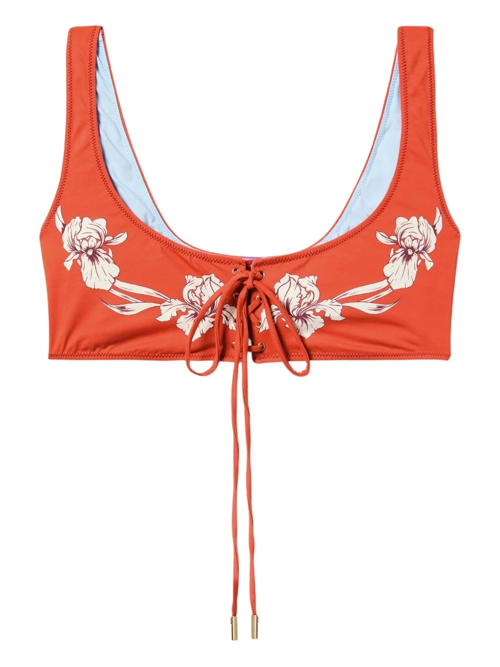 floral-print bikini top Highlights - Orange - Front lace-up fastening - Sleeveless Made in Italy Composition Polyamide 74%, Elastane 26%