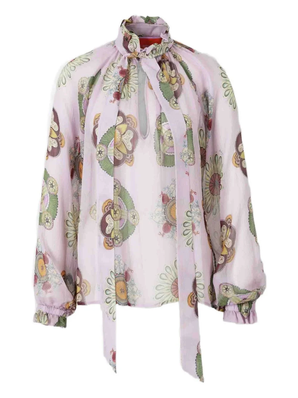 floral-print blouse Highlights - Purple - Floral print - Pleated details - Round neck - Elasticated cuffs Made in Italy Composition Silk 100% Washing instructions Read Manufacturer Guidelines
