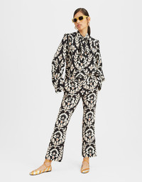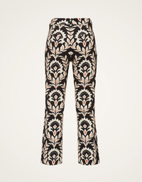These pants were made for wow-ing. With a cigarette shape crafted in our new soft and spongy compact jersey, the 24/7 falls between our Hendrix Pant and Saturday Night Pant styles, and is infinitely flattering on all body shapes. This deliciously dark Ghirlanda print plays as perfectly with your favorite white tee for work or the weekends as it does the matching La Comasca shirt for some place more special. Details & Fit - Compact jersey - Cigarette Cut - Slightly flared hem - Jacquard bella - 4 pockets - Ankle crop - Fly button and zip - Equipped with belt loops - 100% Made in Italy - Composition: 88% Polyester 12% Elastane - The model is 179 cm tall and wears a size S - Garment length: 95cm