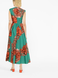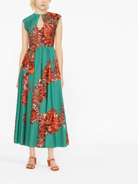 floral-print cut-out dress La DoubleJ's penchant for bold design is showcased with its use of maximalist prints, as seen with this floral pattern dress. The garment falls to a flared skirt for a dramatic yet romantic look. Highlights - Forest green - Cotton - All-over floral print - Round neck - Sleeveless - Cut-out detailing - Fitted waistline - Flared skirt - Ankle-length Made in Italy Composition Cotton 100% SIZE & FIT Model measurements Height 5 ft 10 in(1.79 m) Bust/Chest 31.49 in(80 cm) Hips 35.03 in(89 cm) Waist 23.62 in(60 cm) Washing instructions Machine Wash