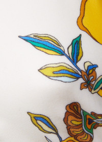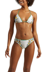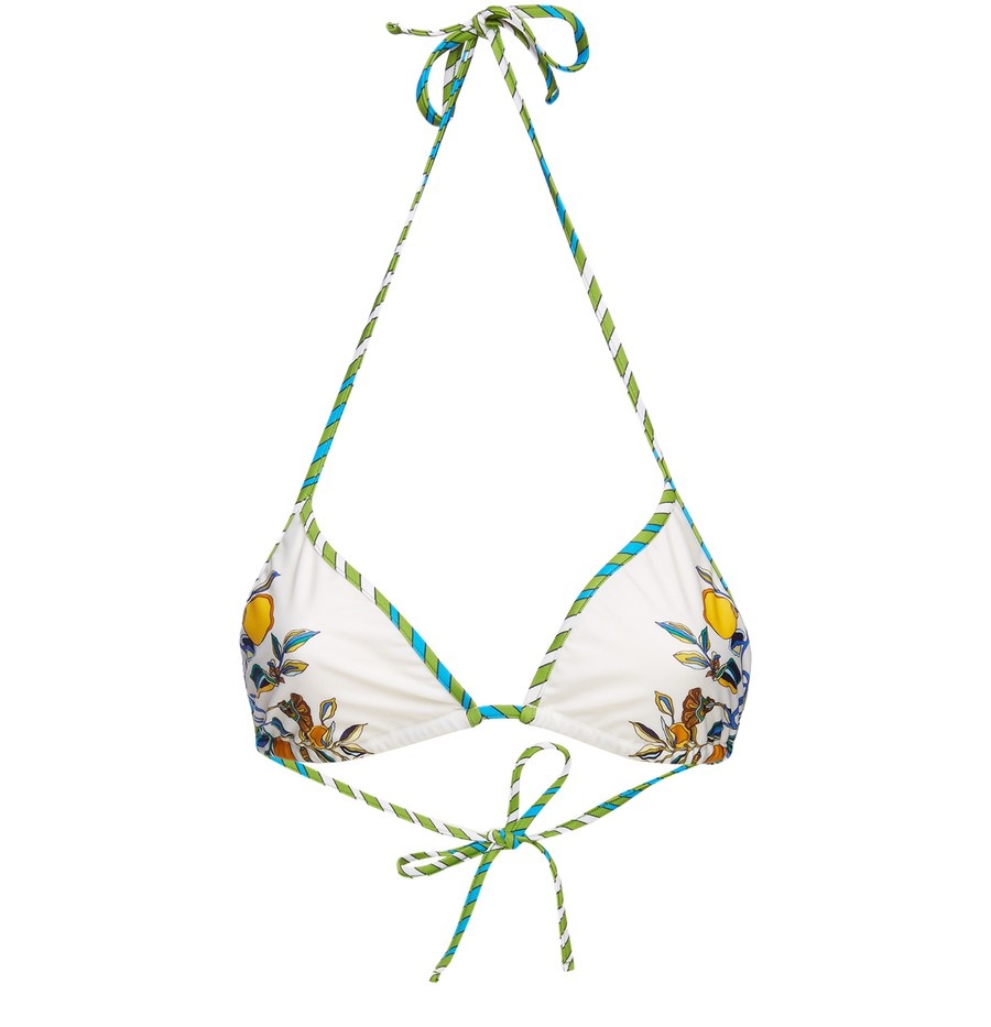 You know the drill, ladies. It's the classic, adjustable cut you know and love — but a bit better. Our version is made of super high-quality Italian Lycra so you'll still be loving it 5 summers from now. Match it with the String Bikini Bottoms or the Bikini Brief in clashing patterns for a mega maximalist beachside look. DESCRIPTION - Triangle bra - No underwire - Thin shoulder straps - Bow fastening - Multicolored print - Contrast color stripe on the edges DETAILS AND CARE MATERIAL: 76% Polyamide / 24% Elastan COLOR: borboni_placed_bianco COUNTRY OF MANUFACTURE: Italy PRODUCT CODE: LDJ827JUMU3DZAAA03