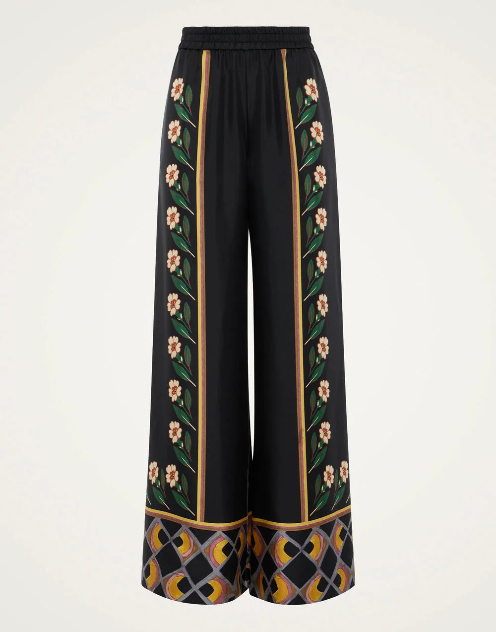 We cannot take credit for inventing the Palazzo Pant silhouette, but we will take credit for making them cool again. These trousers sit on the waist and fall flared, with a wide, breezy fit through the legs – like a skirt, but with the comfort of pants. A bellissima wardrobe addition in this chic, hand-placed Dazed print. Details & Fit - Silk twill - Elastic waist - Concealed side pockets - Roomy fit - 100% Made in Italy - Composition: 100% Silk - The model is 178 cm / 5′ 10″ tall and wears a size S