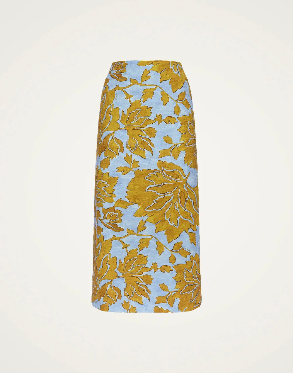 Not your usual librarian's pencil skirt, our Pencil Skirt is destined to become one of your most loved wardrobe pieces in this gorgeous embroidered cotton with a hint of stretch. With a light flare for easy strolling, it sits low on your hips, and hems about the calf (hot tip: style your knee-high boots underneath). Great for work with a crisp white shirt or razz up for special occasions with the matching Aria top. That’s what we call va va voom versatility. Details & Fit - Shot cotton - Hits approx mid-calf - Sits low on the waist - Cut with a slight A-line for ease of movement - Contrast lining - 100% Made in Italy - Composition: 98% cotton, 2% elastane - The model is 177 cm tall and wears a size S - Garment length: 75cm