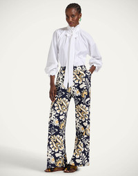 For when you need to head straight from the boardroom to the birthday bash, these pants. Are. IT. Equal parts laid-back and luxurious, the aptly named Let Loose Pant has a tailored, masculine feel, with pleats down the front, a low waist and a whimsical wide leg. With belt loops and pockets in the front and back, these are both utilitarian and seriously stylish, the perfect partner for a basic white tee for off-duty allure, or a beautiful printed Boy Shirt. Go for the jersey for a more fluid fit, the cady for a more structured look, or the cotton for a crisp summer silhouette. Details & Fit - Wide leg pant - Belt loops - Pockets in front and back - Pleated front - Low waist - Wool cady - Made in Italy - Composition: 98% Cotton 2% Elastane - The model is 178 cm / 5′ 10″ tall and wears a size S