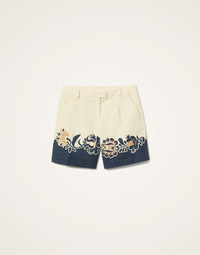 Never understood boyfriend shorts? Inspired by the queen of Milanese cool Viviana Volpicella, these have all the mannish construction details you’d expect - fly, pockets, belt loops - but feel totally feminine too, thanks to our gorgissima Selva print placed by hand to look perfect at every angle. Cut from structured shot cotton that has a textured feel, they are a smidge oversized in a classic Bermuda shape. Do as Viviana would and wear them with a man's white shirt unbuttoned over a bikini and take them somewhere hot, hot, hot. Details & Fit - Shot cotton - Hand-placed print - Fly - Pockets - Belt loops - Bermuda shape - 100% Made in Italy - Composition: 98% Cotton 2% Elastane - The model is 178 cm / 5′ 10″ tall and wears a size S