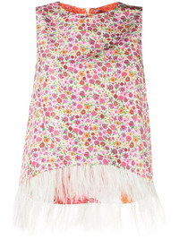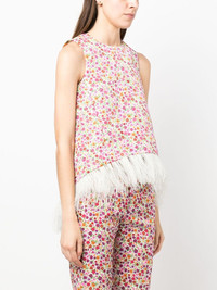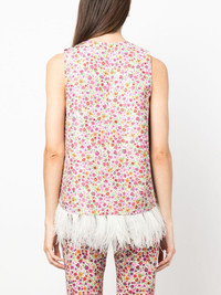 floral-print sleeveless blouse Highlights - Multicolour - All-over floral print - Feather-trim detailing - Round neck - Sleeveless Made in Italy Composition Polyester 98%, Ostrich Feather 2% SIZE & FIT Model measurements Height 5 ft 11 in(1.8 m) Bust/Chest 31.49 in(80 cm) Hips 36.22 in(92 cm) Waist 25.59 in(65 cm) FittingInformation Designed for a relaxed fit, this piece allows for comfort and movement when worn Made from a midweight non-stretch fabric This piece fits true to size – take your usual size Washing instructions Dry Clean Only