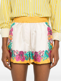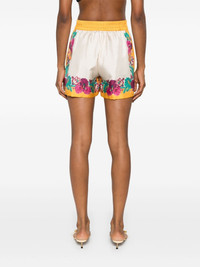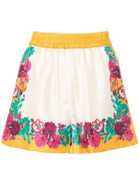 floral-print silk shorts Highlights - Light beige/multicolour - Silk - Twill weave - Satin finish - Floral print - Two side slash pockets - Thigh-length - Elasticated waistband Made in Italy Composition Silk 100% SIZE & FIT Model measurements Height 5 ft 11 in(1.8 m) Bust/Chest 32.67 in(83 cm) Hips 35.82 in(91 cm) Waist 25.98 in(66 cm) FittingInformation Designed for a relaxed, roomy fit The elasticated waist allows for a comfortable fit Made from a lightweight non-stretch fabric This piece fits true to size – take your usual size Washing instructions Dry Clean Only