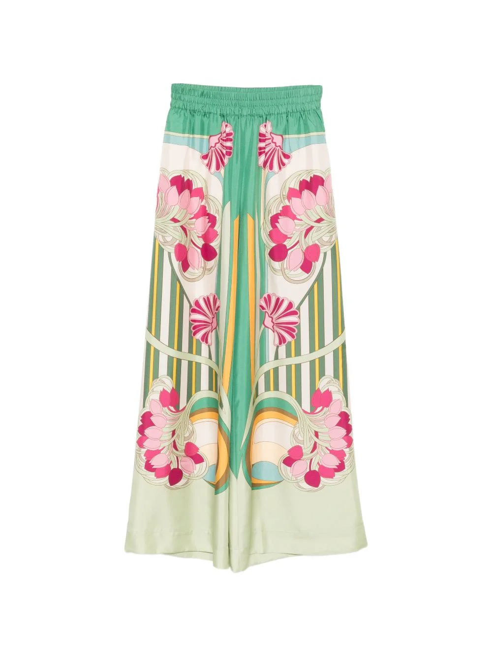 floral striped trousers Highlights - Green - Floral print - Striped pattern - Elasticated waistband Made in Italy Composition Silk 100% Washing instructions Dry Clean Only