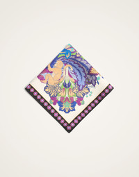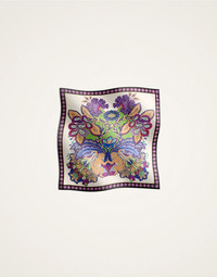 Give your outfit some dolce vita flair with our Made in Italy foulard. The silk square is the oldest trick in the Milanese Sciura style book, always stashed in a handbag to be folded around the hair, wrapped loosely into a crisp shirt collar, or tied onto a wrist, ponytail or bag strap. Crafted from the finest silk twill from Lake Como, this smaller version makes a great pocket or collar companion and arrives in our hand-placed vibration-raising prints. Details & Fit - Square silk foulard - Placed Print - Composition: 100% Silk - Made in Italy - Measures 45 x 45 cm