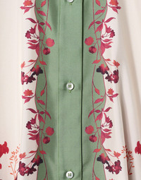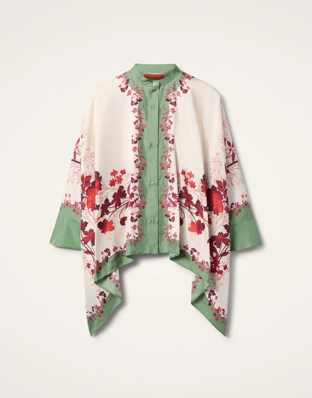 A J.J. staple year-round, our gorgeous silk Foulard Shirt is like a walking fine art piece. Part shirt, part poncho, it’s crafted in fluid Italian-made silk in a chic waterfall style fit that is flattering on all shapes and sizes. Draping off the arms with a Korean collar and buttons down the front, it’s a beautiful canvas for our hand-placed prints, including this ultra-chic, Deco-inspired print. Style with black pants for the boardroom, unbutton over a swimsuit for the beach bar. Details & Fit - Silk twill - Hand-placed print - Korean collar - Buttons through front - Waterfall style fit - Cuffs - 100% Made in Italy - Composition: 100% Silk - The model is 180 cm / 5′ 11″ tall and wears a size S