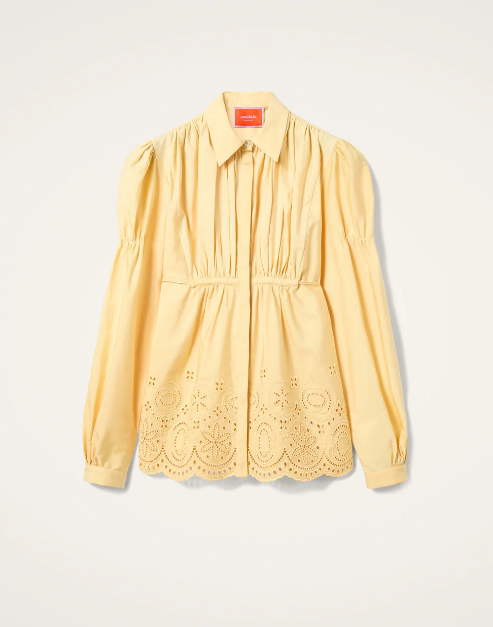This is not your basic button-down, bella. The classic collar might be the only standard element in this item - the buttons down the front are hidden (the one that isn't has a scarab detail that symbolizes rebirth), the elasticated cinch mid-sleeve, the gathering under the bust that can be adjusted from behind - this piece is special, sister. Basically, whatever you pair her with, she’s bound to boost your energetic frequency. Franca, you fancy! Details & Fit - Lace button down - Hidden buttons (one with scarab detail) - Sacred geometric sangallo - Cinch mid sleeve - Adjustable gathering under bust - Made in Italy - Composition: 100% cotton lace - The model is 180 cm / 5′ 11″ tall and wears a size S