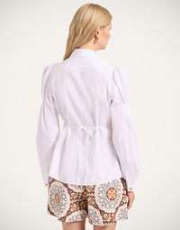 This is not your basic button-down, bella. The classic collar might be the only standard element in this item - the buttons down the front are hidden (the one that isn't has a scarab detail that symbolizes rebirth), the elasticated cinch mid-sleeve, the gathering under the bust that can be adjusted from behind - this piece is special, sister. Basically, whatever you pair her with, she’s bound to boost your energetic frequency. Franca, you fancy! Details & Fit - Lace button down - Hidden buttons (one with scarab detail) - Sacred geometric sangallo - Cinch mid sleeve - Adjustable gathering under bust - Made in Italy - Composition: 100% cotton lace - The model is 180 cm / 5′ 11″ tall and wears a size S