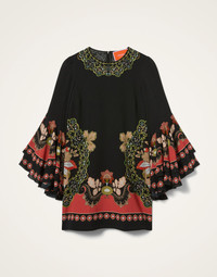 Here at La DoubleJ, we love a good office-to-aperitivo outfit, and the Friday Dress delivers. With an easy boxy shape and detailed double ruche at the wrist, this beauty has just the right balance of business and bellini. We love her with hi-top sneakers during the day and your favorite boots at night. Details & Fit - Crepe Marocain - Mock collar - Double ruche at sleeve - Mid-thigh hem - 100% Made in Italy - 100% Viscose - The model is 176 cm / 5′ 9″ tall and wears a size S