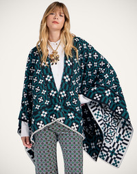 Hell to the yes, how do you get your hands on one of these, we hear you say! One for all you divine beings out there, this wool-silk poncho is adorned with our chic hand-placed Byte print, and is a little lighter than our blaize wool option. It's super special. Keep it handy for meditation moments, airplanes or chic nights out. Cocoon up and let the good vibrations flow! Details & Fit - Wool and Silk Blend - Blanket wrap - Hand-placed print - Composition: 95% Wool 5% Silk100% Made in Italy - Measures 140 x 150 cm