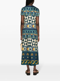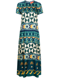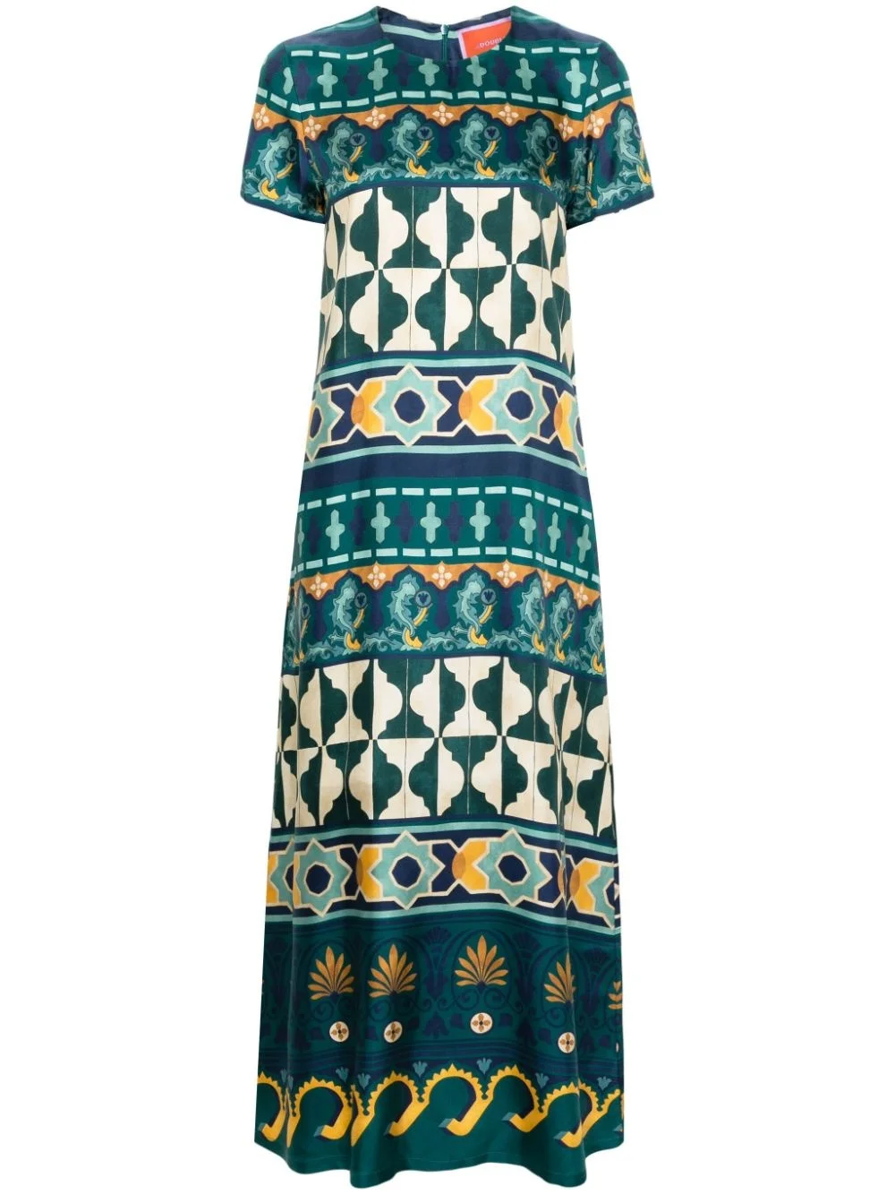 geometric-print silk swing dress Highlights - Emerald green/multicolour - Silk - Satin finish - Geometric-pattern print - Round neck - Rear zip fastening - Short sleeves - Shift style - Straight hem - Ankle-length Made in Italy Composition Silk 100% SIZE & FIT Model measurements Height 5 ft 11 in(1.8 m) Bust/Chest 34.25 in(87 cm) Hips 35.82 in(91 cm) Waist 24.8 in(63 cm) Measurement SLEEVE LENGTH 5.51 in(14 cm) HIPS 37.79 in(96 cm) LENGTH 49.21 in(125 cm) WAIST 33.07 in(84 cm) FittingInformation Designed to be fitted across the shoulders, becoming looser as it falls Made from a lightweight non-stretch fabric This piece fits true to size – take your usual size