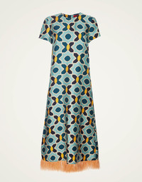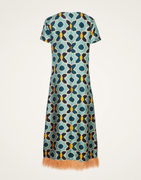 You never forget your first love and this is the story of our Swing Dress. LDJ’s very first model, this easiest of silhouettes is cut slim in the shoulders, generous in the hips, to be adored by babes of all ages. Done in our fluid silk twill that doesn’t cling a bit, it’s finished with a fabulous contrast feather trim that honestly finds a fan club wherever you take it. With its understated T-shirt silhouette, anything goes. Details & Fit - Silk twill - Hemline trimmed with ostrich feathers - Slim in the shoulders, generous in the hips - Classic T-shirt silhouette - Falls into an A-line - Hits just above the ankles - Hidden side slit pockets - Concealed back zipper - 100% Made in Italy - Composition: 98% Silk 2% Ostrich Feathers - The model is 180 cm tall and wears a size S - Garment length: 135cm