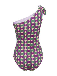 Goddess graphic-print swimsuit Cut for an elegant one-shoulder silhouette, the Goddess swimsuit from La DoubleJ features an adjustable strap that lets you tie the bow up as tight or as loose as you please. Decorated with the brand's Mezzaluna print, this one-piece can be reversed to reveal a contrasting lilac purple side. Made in Italy Composition Polyamide 92%, Elastane 8%