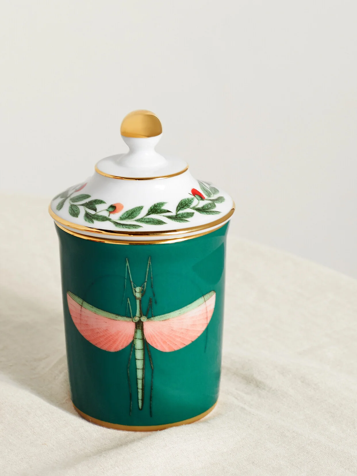La DoubleJ's mug comes with a decorative lid that not only looks beautiful, but will also keep your beverage of choice piping hot. It's made from quality Italian Ancap porcelain printed with a vintage-inspired dragonfly motif and has hand-applied gold-plated edges.
