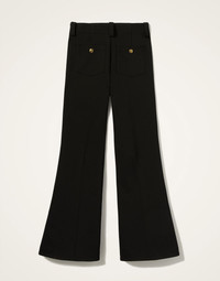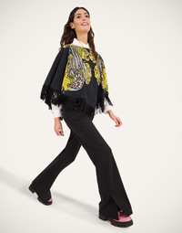 With their soft seventies flare, slit hem and flattering mid-rise, the Slit Pants are the coolest high-kicking trousers of the season. Delivered this season in our structured punto milano, these come with a removable ribbon belt and look gorgeous with a heels lace up boot and a Jones Blazer. Details & Fit - Punto milano - Mid rise - Button fly - Slit at ankle - American pockets - Removable ribbon belt - Composition: 68% Polyester 29% Viscose 3% Elastane