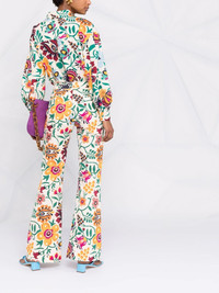 graphic-print flared trousers multicolour cotton graphic print concealed front fastening two side slit pockets flared design Made in Italy Composition Cotton 97%, Elastane 3% SIZE & FIT Model measurements Height 5 ft 11 in(1.8 m) Bust/Chest 31.49 in(80 cm) Hips 35.82 in(91 cm) Waist 24.8 in(63 cm) Measurement FRONT RISE 10.03 in(25.5 cm) INSIDE LEG 33.07 in(84 cm) BACK RISE 14.37 in(36.5 cm) HIPS 37 in(94 cm) WAIST 27.55 in(70 cm) FittingInformation This piece fits true to size. We recommend you get your regular size Designed to be fitted at the waist and through the thigh, loose from the knee Made with a mid-weight stretch fabric Washing instructions Machine Wash