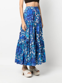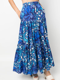graphic-print tiered cotton skirt blue cotton all-over graphic print tiered skirt voluminous skirt elasticated waistband two side inset pockets ankle-length Made in Italy Composition Cotton 100% SIZE & FIT Model measurements Height 5 ft 10 in(1.79 m) Bust/Chest 33.07 in(84 cm) Hips 35.82 in(91 cm) Waist 24.01 in(61 cm) Washing instructions Machine Wash