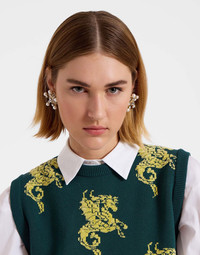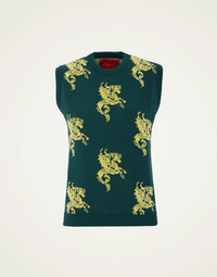 Our gilets might be our favorite new knit additions to our fall wardrobes and this one, crafted in our Italian fleece with our jacquard embroidery Gryphos print, might take top billing this season. Layer it over a black or White Poet Shirt in October, or even solo on a warm Spring day. Details & Fit - Knit fleece gilet - Sleeveless - Hits at waist - Ribbed collar - Jacquard print embroidery - 100% Made in Italy - Composition: 87%Viscose 8%Polyester 5%PBT - The model is 181 cm / 5′ 11.3″ tall and wears a size S