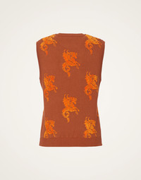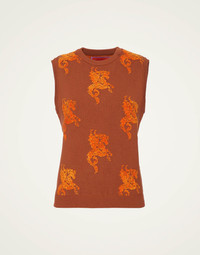 Another day, another dazzling gilet. This slim cut gilet comes in our raise Gryphos print inspired by the legendary half-eagle, half-lion beast said to bring prosperity and courage. We love her paired with our Atelier top or Poet Dress, but she shines just as bright over a basic tee with jeans. Details & Fit - Crew neck knit gilet - Ribbed collar and armholes - Slim cut - 100% Made in Italy - Composition:87%Viscose 8%Polyester 5%PBT - The model is 181 cm / 5′ 11.3″ tall and wears a size S