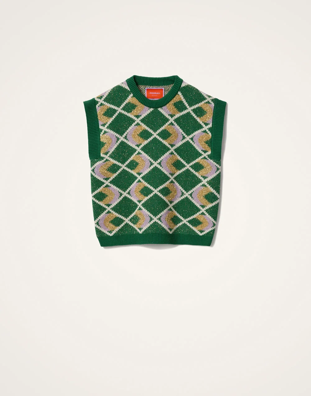 What statement sweater feels better than one crafted from Italian wool? Our Half Light Gilet is made in Italy from a texture-fest cashmere and mohair blend and is designed to bring high vibes to winter wardrobes in these happy hues. With a mock neck and slits on the hips, it’s a stylist's dream with its mannish oversized fit that brings plenty of swag to pretty print dresses or black turtlenecks alike. Details & Fit - Jacquard gilet - Mock neck - Composition: 24% Wool 22% Nylon 20% Mohair 12% Polyamide 10% Viscose 8% Polyester 4% Cashmere - Made in Italy - The model is 180 cm / 5′ 11″ tall and wears a size S