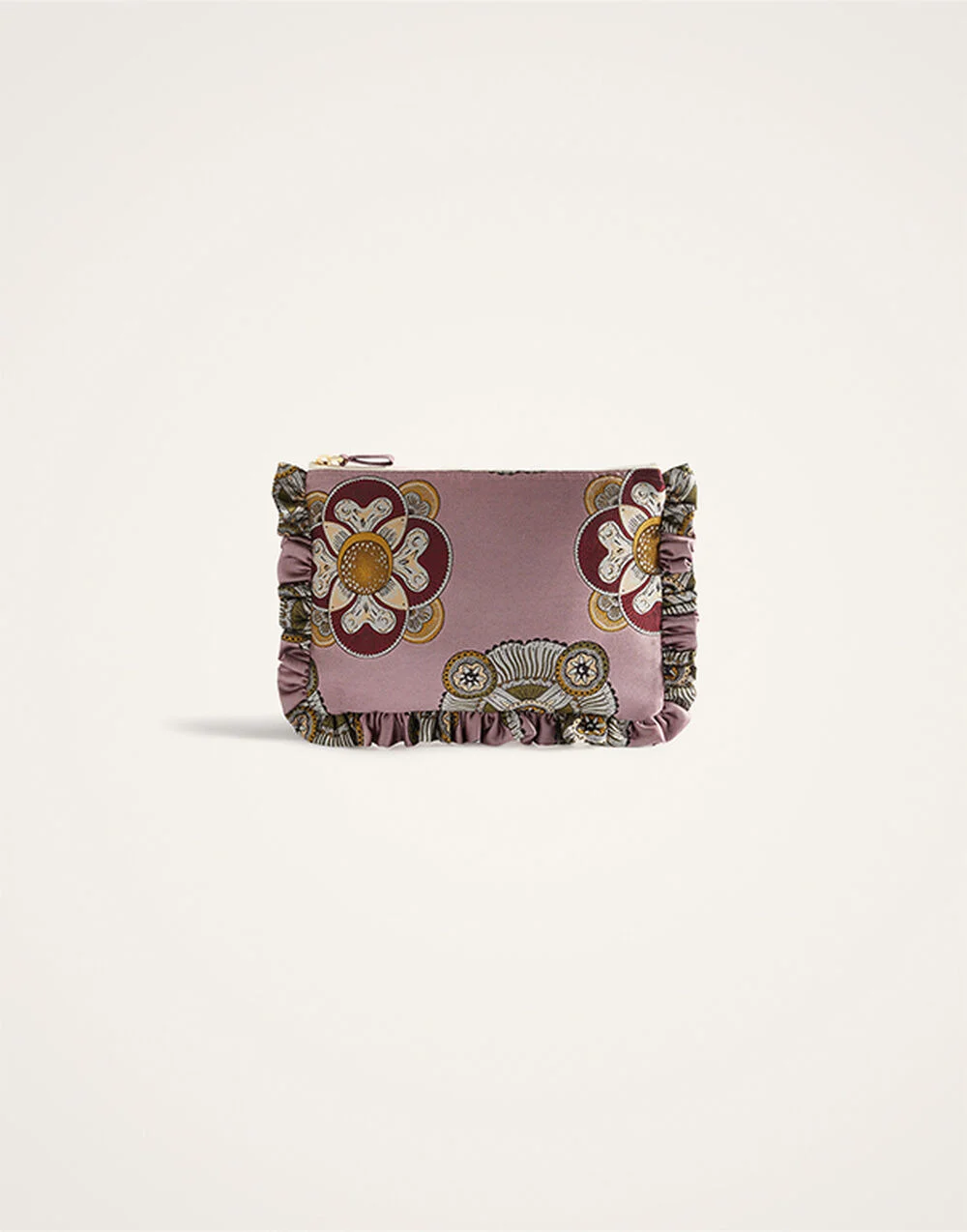 Our soft oversized zip pouch is a multi-use beauty that not only elevates the status of your dinner-to-dancing outfit, but will easily house a cell phone, mini tablet and cardholder. The side handle makes it super simple to carry around which – great news! – gives you free hands to hold your bellini at a cocktail party. Outrageously elegant in this Nucleus-print silk jacquard. Details & Fit - Nucleus jacquard - Side handle - Zipper - Measurement: 32cm x 23cm - 100% Made in Italy - Composition: 72% Polyester 28% Silk